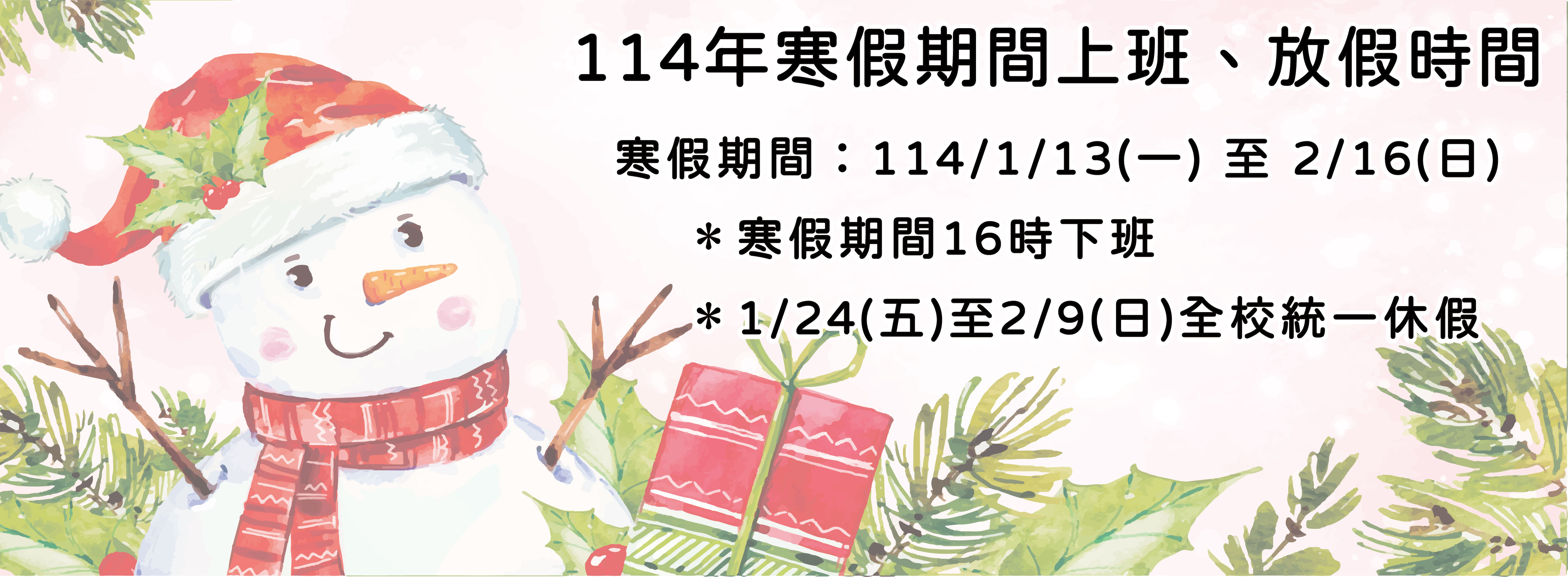【公告】有關本校114學年度寒假期間上班、放假等事宜