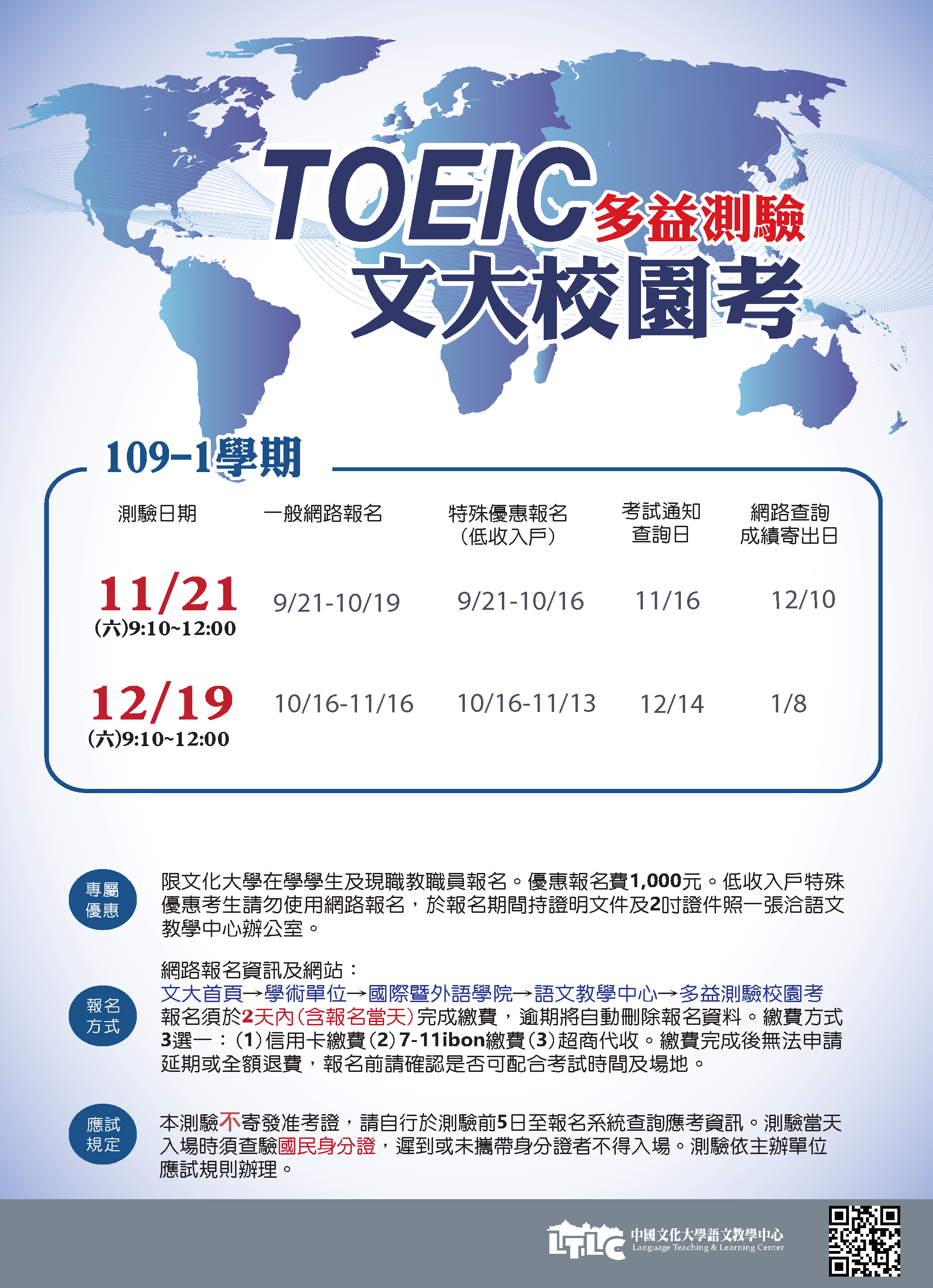 公告109學年第一學期TOEIC多益測驗文大校園報名至11/16截止。 公告109學年第一學期TOEIC多益測驗文大校園報名至11/16截止。 https://ap2.pccu.edu.tw/pccupost/post/content.asp?Num=2020911124238772 2020-11-04 11:51:41 By zly8 查看所有公告