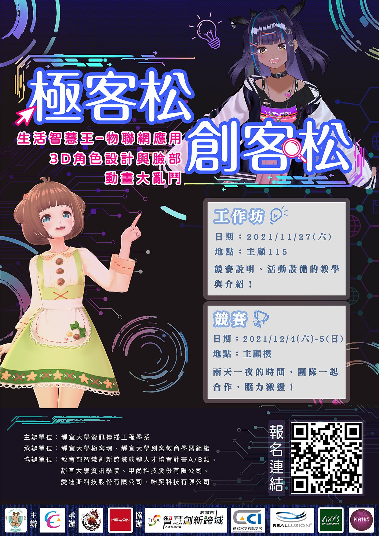 一、本次競賽內容包含極客松「3D角色設計與臉部動畫大亂鬥」與創客松「生活智慧王-物聯網應用」。