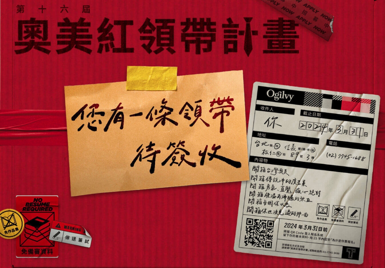 第十六屆奧美紅領帶計畫即日起已開放報名,今年不需作品集及履歷,只需填寫個人基本資料及 25 個字的報名原因即可直接參加筆試。奧美每年都盼望暑假的到來,期盼能夠認識更多的年輕學子並邀請他們加入奧美。